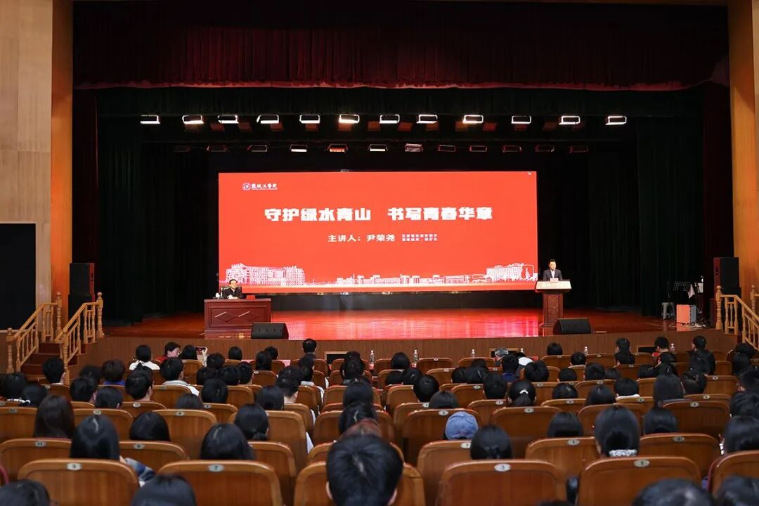尹荣尧围绕“是什么?为什么?怎么看?如何干?”四个基本问题,深入浅出地给大家普及了生态环境保护方面的基础知识,通过一系列数据和案例畅谈了江苏的生态文明建设实践,为青年学子们树立正确的生态价值观、投身生态文明建设实践给出了前行的方向。他倡议,大学生要争做生态文明思想的“勤学者”与“智播者”,争做绿色生活方式的“践行者”与“引领者”;争做美丽中国建设的“创新者”与“生力军”。
