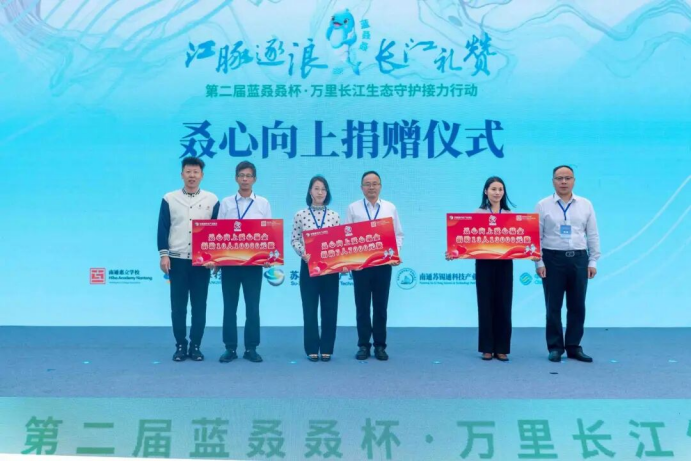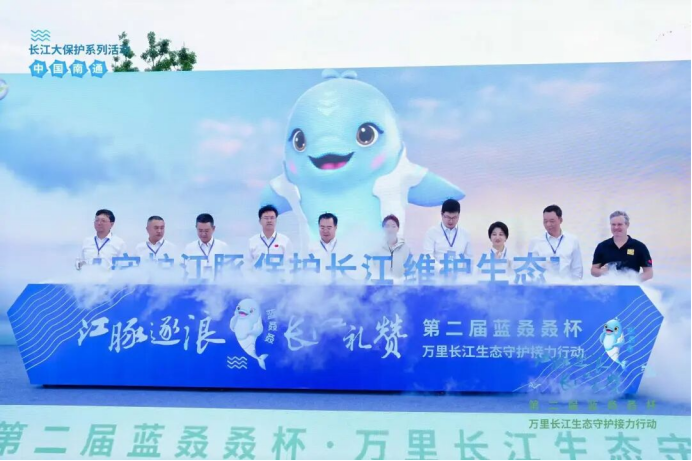 作为对“长江保护”主题的深化,本次活动邀请巴黎奥运会艺术体操冠军郝婷作《长江保护倡议》,并特别设置“长江源水尾水融合仪式”。今年8月,“蓝叒叒”志愿队远赴青海,登上4000米高原采集长江源头水样;南通作为江苏长江岸线最长城市、长江入海前的“最后一站”,此次采集的尾水与之呼应。开幕式上,两地水样交融,象征从源头到入海口的完整保护,展现生生不息的生态守护接力精神。