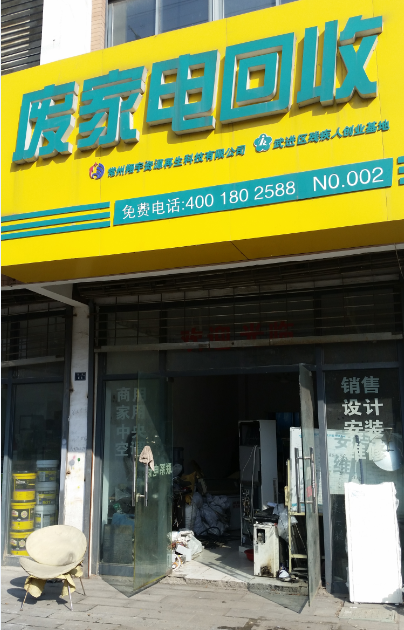 翔宇在常州开设了8个回收门店,覆盖全市20多个小区,惠及近10万居民。小环现在所在的是位于金鸡东路316号的2号回收门店,刚刚从王先生家里回收的电视机也被工作人员送到这里。回收店内的废旧家电会被统一送到翔宇进行正规拆解处理。