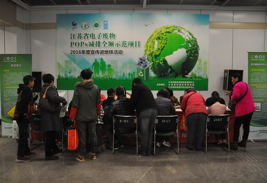 2013年,江苏省与湖北省、天津市共同被确定为全球环境基金电子废物POPs减排项目的三个示范省。项目启动以来,江苏省环保厅从江苏省政策制定、江苏省能力建设、江苏省技术推广和加强政府地方部门指导监督、执法能力等四方面开展工作;示范企业常州翔宇资源再生科技有限公司从定点回收系统示范、电器拆解技术示范、电路板退锡工艺示范和脂塑工艺示范等四方面开展工作。江苏省电子废物POPs减排项目以“最大限度减少电器电子产品生命周期内POPs等全球关注环境污染物的排放,保护当地乃至全球的生态环境和人体健康”为目标,力求防止和消除POPs和PTS对社会经济发展和人民群众生产生活的影响,致力于促进电子垃圾拆解行业的可持续发展。