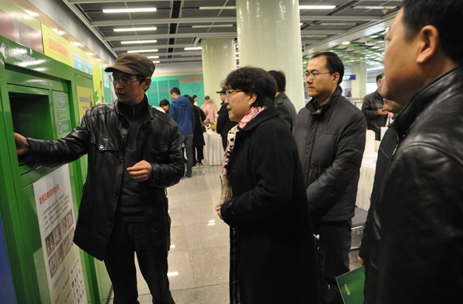于厅长在现场了解绿钥匙智能资源回收箱使用方法