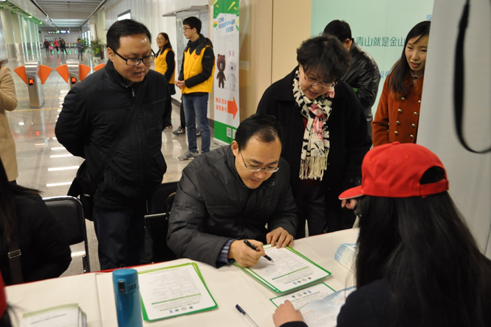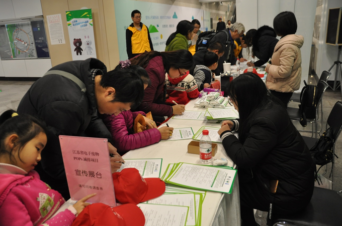 两天的活动吸引了来往绿博园地铁站的几千名乘客参与,现场回收调查问卷500余份,300余人扫码关注江苏省环保厅官方微信“江苏环保”和“e环保·易回收”电子废物规范化回收平台,400余人参与电子废物规范化回收小知识有奖问答。一位准妈妈说,不知道有这么一个规范回收的平台,正好家里有台旧冰箱不知道怎么处理,现在方便了;还有一位乘客一边向工作人员请教微信回收的流程,一边说,举手之劳就能保护环境,哪怕价格比小商小贩收的便宜点都愿意。